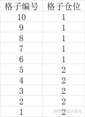 假设价格持续下跌,跌了10格加了10份1的基仓后,就开始加大投入,每跌一格下2份基仓。如果价格还在跌,当加了10次2份基仓后,后面的格子就一直下3份基仓来加仓。